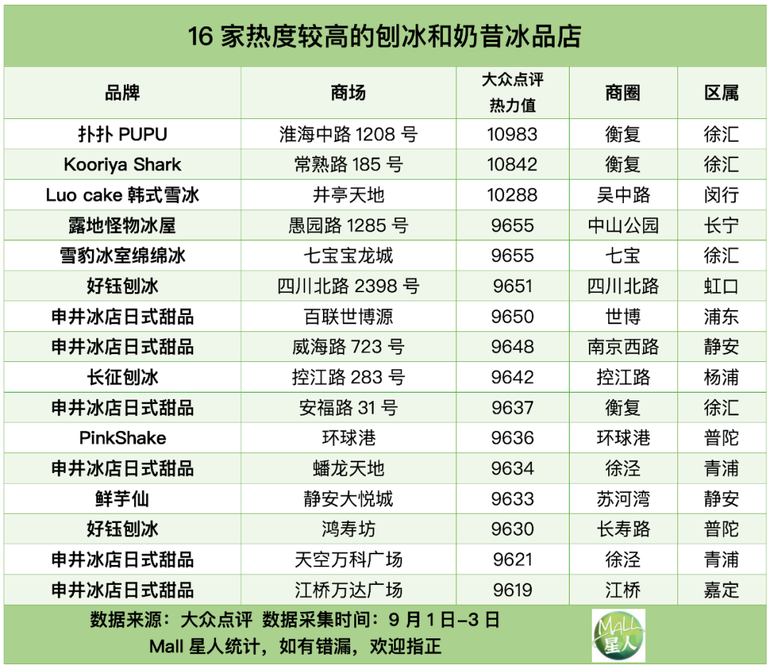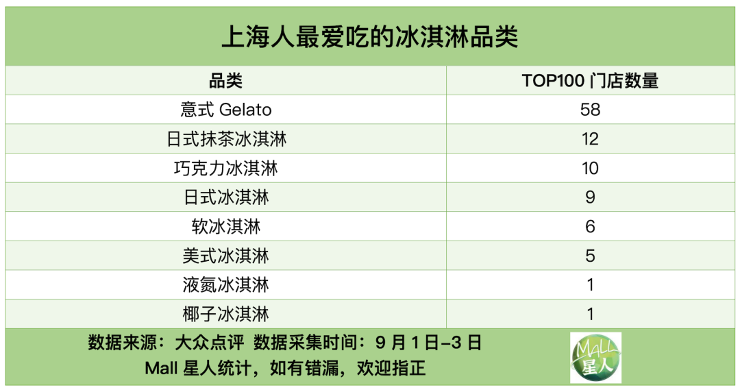 根據(jù)大眾點(diǎn)評的冰淇淋門店熱力值,Mall星人統(tǒng)計(jì)出上海目前最受歡迎的前10%冰淇淋門店,總計(jì)100家(由于篇幅限制,上海冰淇淋熱力值TOP100門店全名單請查看今日推文的次條內(nèi)容)。