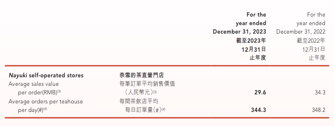 財(cái)報(bào)顯示,2023年,奈雪的茶每家茶飲店日均訂單量為344.3單,同比下跌1.12%。
