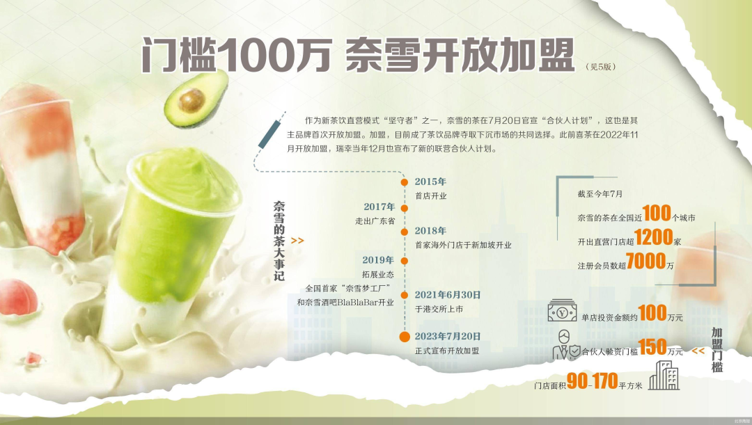 正因?yàn)橹睜I(yíng)模式愈發(fā)難以快節(jié)奏擴(kuò)張,諸多此前堅(jiān)持直營(yíng)的茶飲品牌紛紛加碼加盟業(yè)務(wù)。2023年7月,奈雪的茶官宣開啟“事業(yè)合伙業(yè)務(wù)”,開放加盟。在此之前,喜茶和樂樂茶也已先后開放加盟