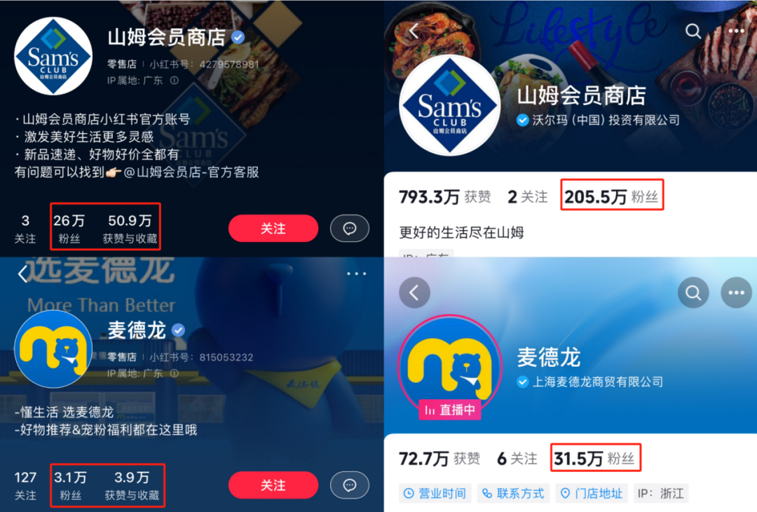 如此種種,使得麥德龍品牌影響力相對受限。對比麥德龍與山姆在社交平臺上的數(shù)據(jù)表現(xiàn),差距一目了然。