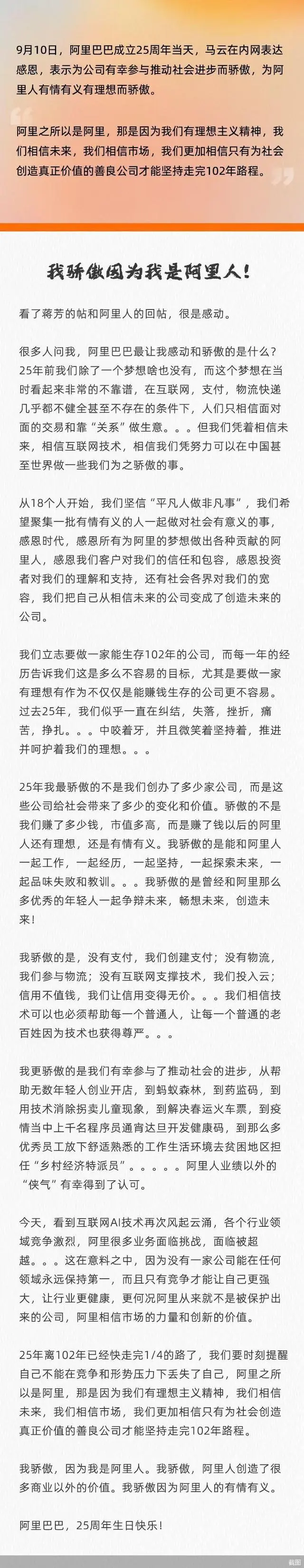 阿里成立25周年,馬云內(nèi)網(wǎng)再度發(fā)聲