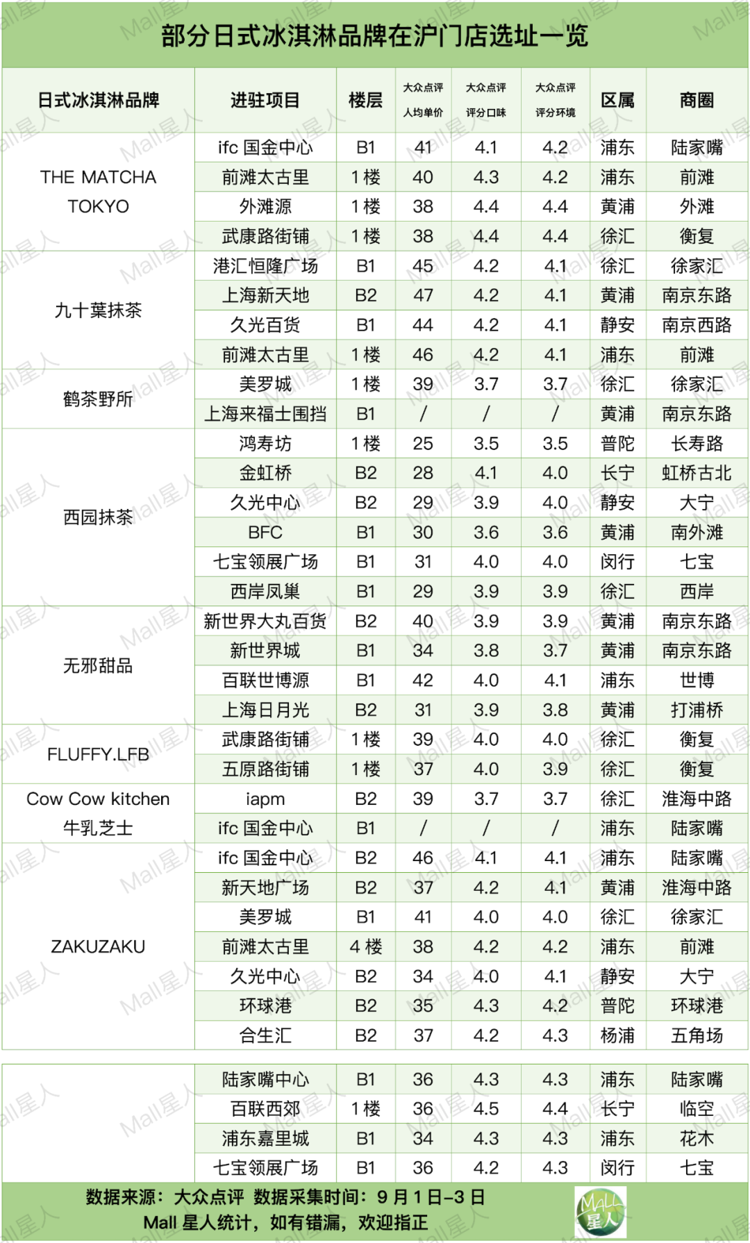 美式冰淇淋的門店最多的依然是DQ和哈根達(dá)斯,日式冰淇淋掌門仍是ZAKUZAKU,抹茶冰淇淋四大門派一一西園、九十葉、THE MATCHA TOKYO、無(wú)邪目前門店數(shù)量難分高下。