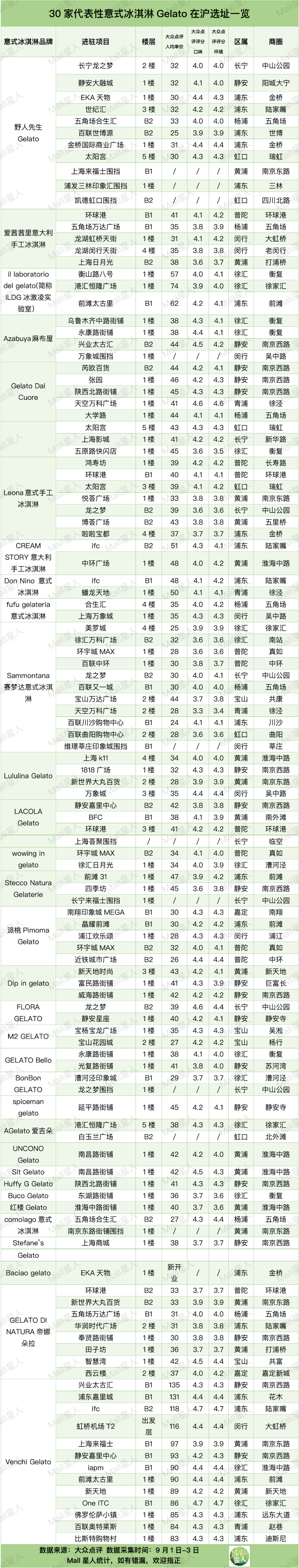 上海50個(gè)Gelato冰淇淋品牌200家商場(chǎng)選址清單