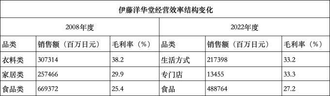 伊藤洋華堂在1998年度銷售額超過1.5萬億日元,到2022年度減少到1萬億日元,總額銷售額減少了三分之一,營業(yè)利潤率從超過4%下降到無利潤虧損狀態(tài)。