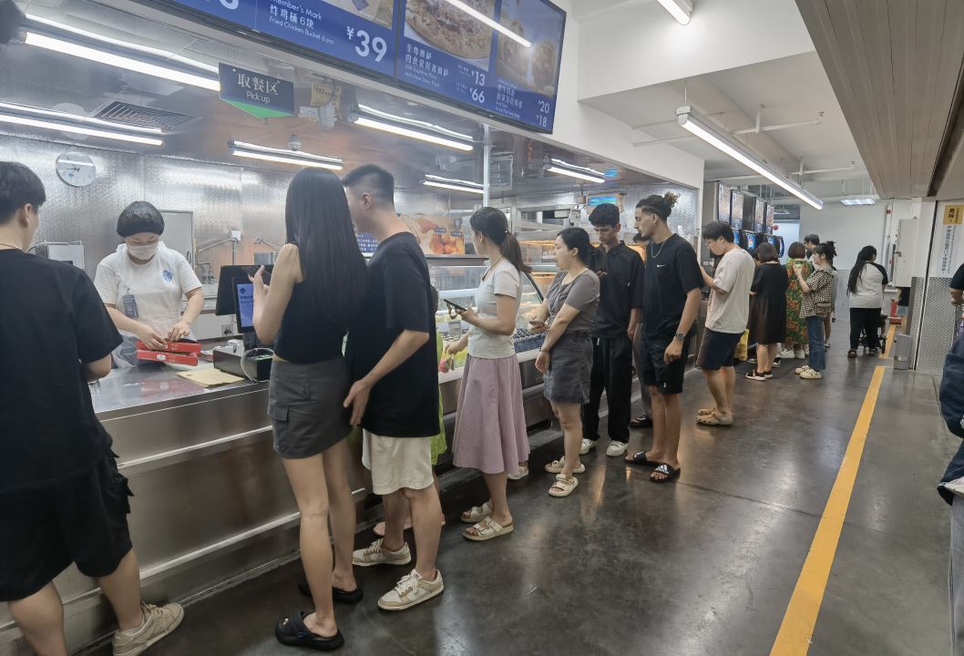 ·收銀臺(tái):進(jìn)入Costco時(shí),約有5個(gè)收銀臺(tái)開(kāi)放收銀,每個(gè)柜臺(tái)等待結(jié)賬的顧客約1-2人;山姆開(kāi)放的收銀臺(tái)共13個(gè),平均排隊(duì)人數(shù)為3-5人,自助收銀區(qū)也有小長(zhǎng)隊(duì)。