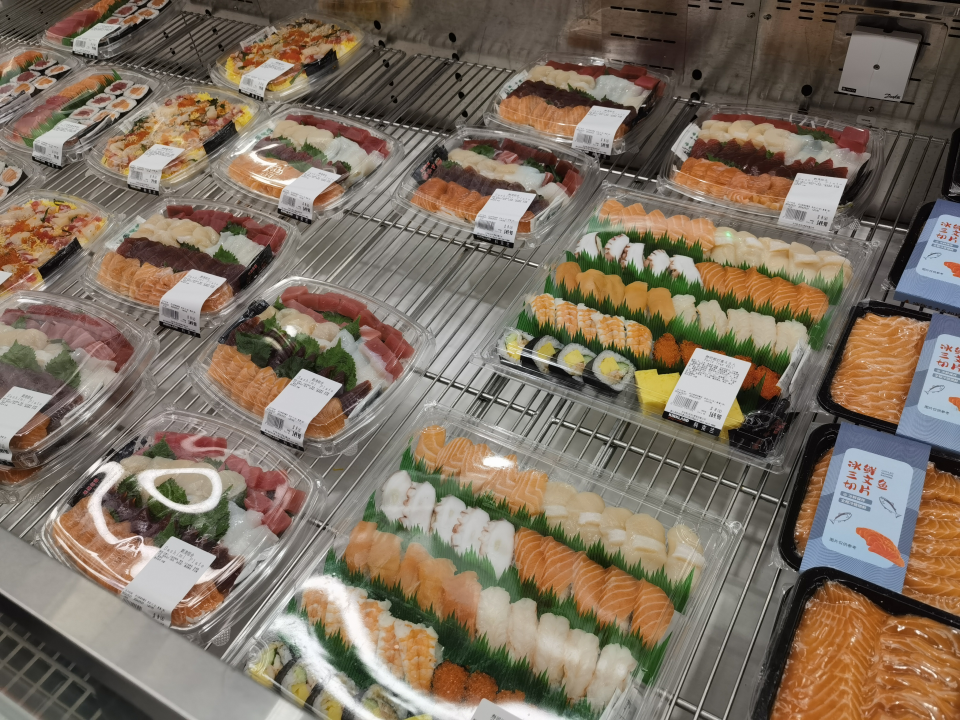 山姆人群分布較為松散,通道略顯擁擠,各個(gè)區(qū)域均有一定客流,較為集中的區(qū)域依舊為果蔬、烘焙、肉類(lèi)等,試吃點(diǎn)相對(duì)較少。