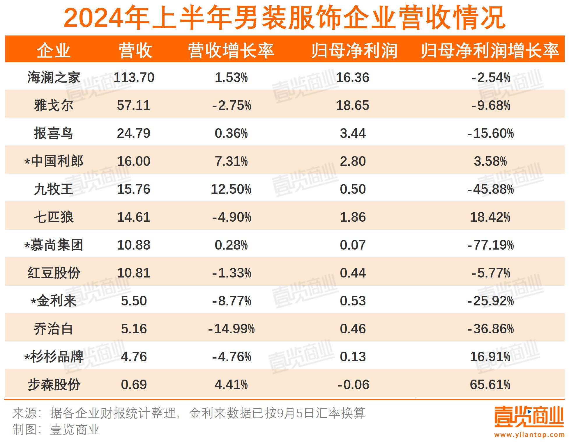 從男裝品類看,業(yè)績難言樂觀。雅戈爾營收、凈利潤下滑;七匹狼拋開投資業(yè)務(wù)帶來的收益,其服裝主業(yè)同樣下滑;報喜鳥凈利潤下滑;九牧王營收增長但利潤接近腰斬......12家男裝企業(yè)中,僅有中國利郎和步森股份實現(xiàn)營收凈利雙增長。