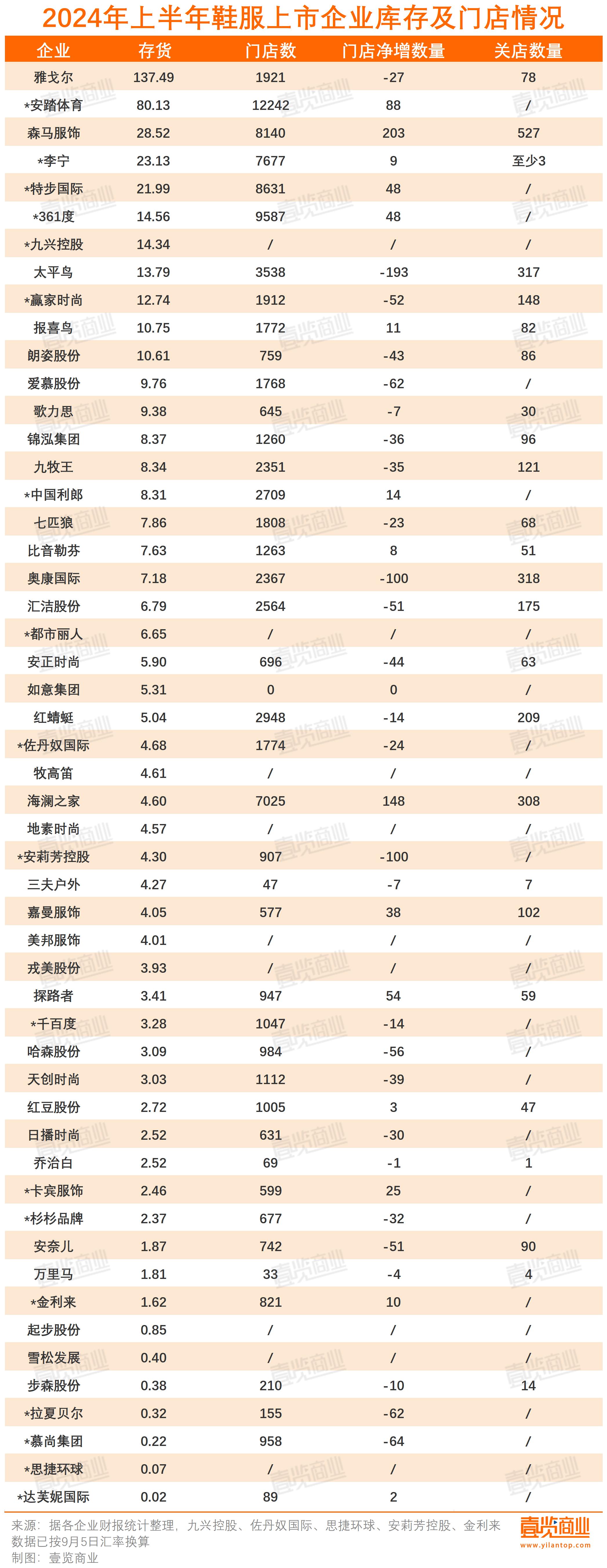 聚焦今年上半年,鞋服行業(yè)的庫存表現(xiàn)依然承壓。52家鞋服企業(yè)存貨量達(dá)536.55億,平均每家企業(yè)的存貨達(dá)10.32億,這個數(shù)字甚至已經(jīng)超過了24家企業(yè)的上半年營收數(shù)據(jù)。
