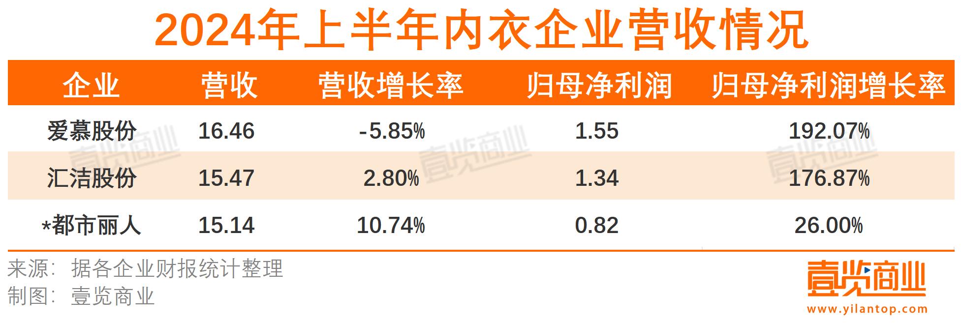 從內(nèi)衣品類看,表現(xiàn)不容樂觀。占據(jù)較高市場份額的愛慕股份上半年營收同比下滑5.85%至16.46億元,是其2021年上市以來同期最低水平;曼妮芬的母公司匯潔股份上半年營收雖小幅增長2.80%至15.47億元,但歸母凈利潤同比下滑24.18%至1.34億元;都市麗人稍顯表現(xiàn)亮眼,營收、凈利雙雙增長,歸母凈利潤增速超200%。