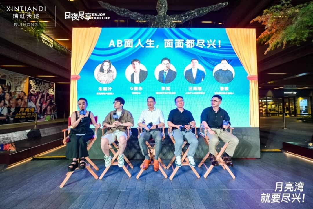 (從左至右)月亮灣盡興提案人—朱莉葉、視頻博主—G僧東、瑞安新天地行政總裁—張斌、上海開心麻花董事長—汪海剛、城市集市聯(lián)合創(chuàng)始人—魯敏