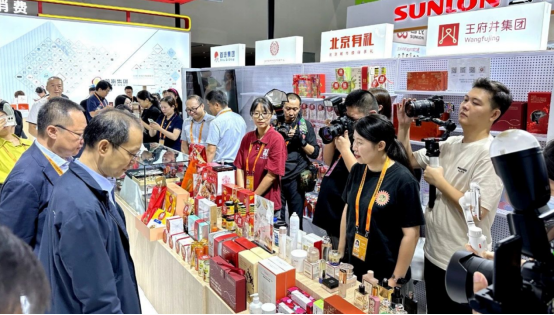 此外,還帶來了有“北京有禮”形象露出的老字號禮盒,將老字號產(chǎn)品進(jìn)行再組合、再創(chuàng)意、再包裝,以及項(xiàng)目與老字號聯(lián)名共創(chuàng)的產(chǎn)品——“北京有禮&京華-中軸茶書”“北京有禮&京華-飄雪袋泡茶”“北京有禮&百花-檸檬蜂蜜水”等,滿足各類消費(fèi)人群的北京城市級伴手禮需求,吸引眾多觀眾駐足。