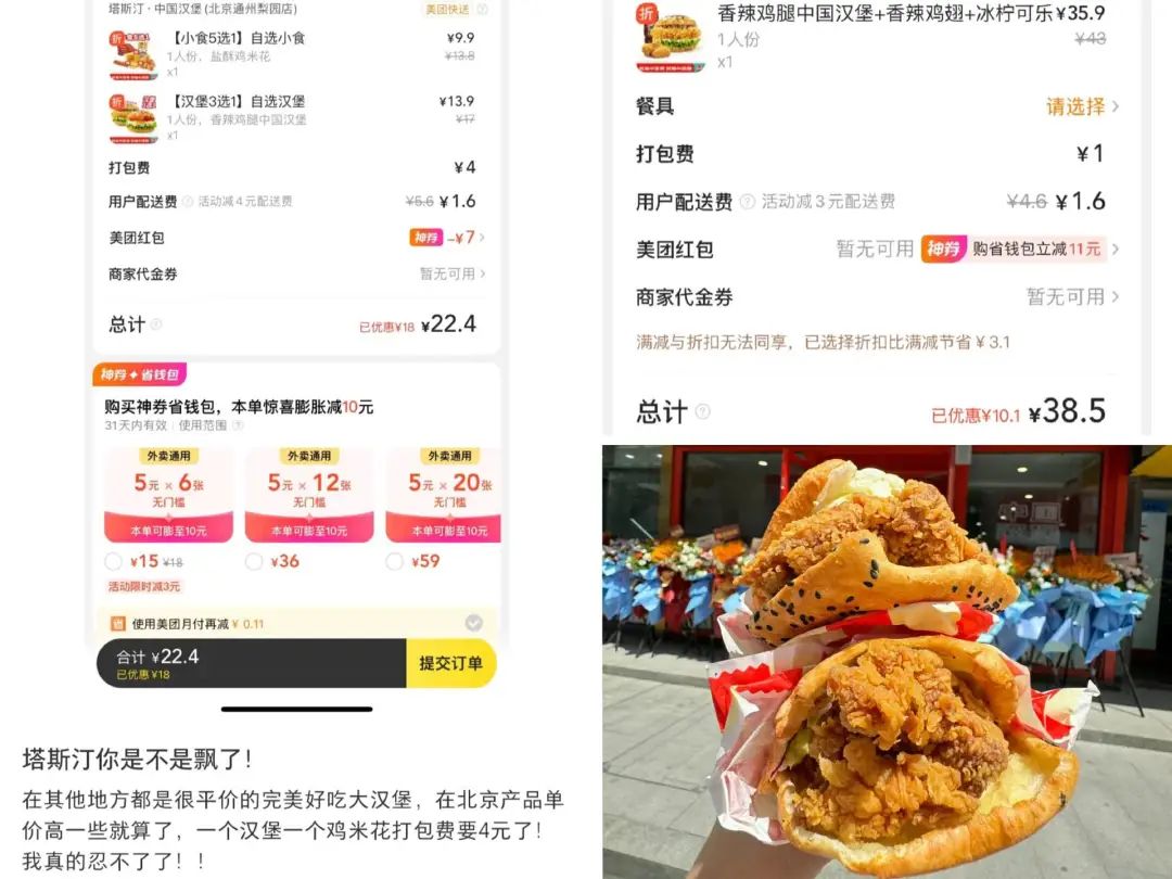 與此同時(shí),塔斯汀在走出下沉市場(chǎng)進(jìn)入北京、上海等一線城市后,受到總成本控制的壓力“性價(jià)比屬性”并不明顯,在同樣沒有活動(dòng)的情況下,人均幾乎要達(dá)到30-40元,甚至部分產(chǎn)品還要略高于麥肯。