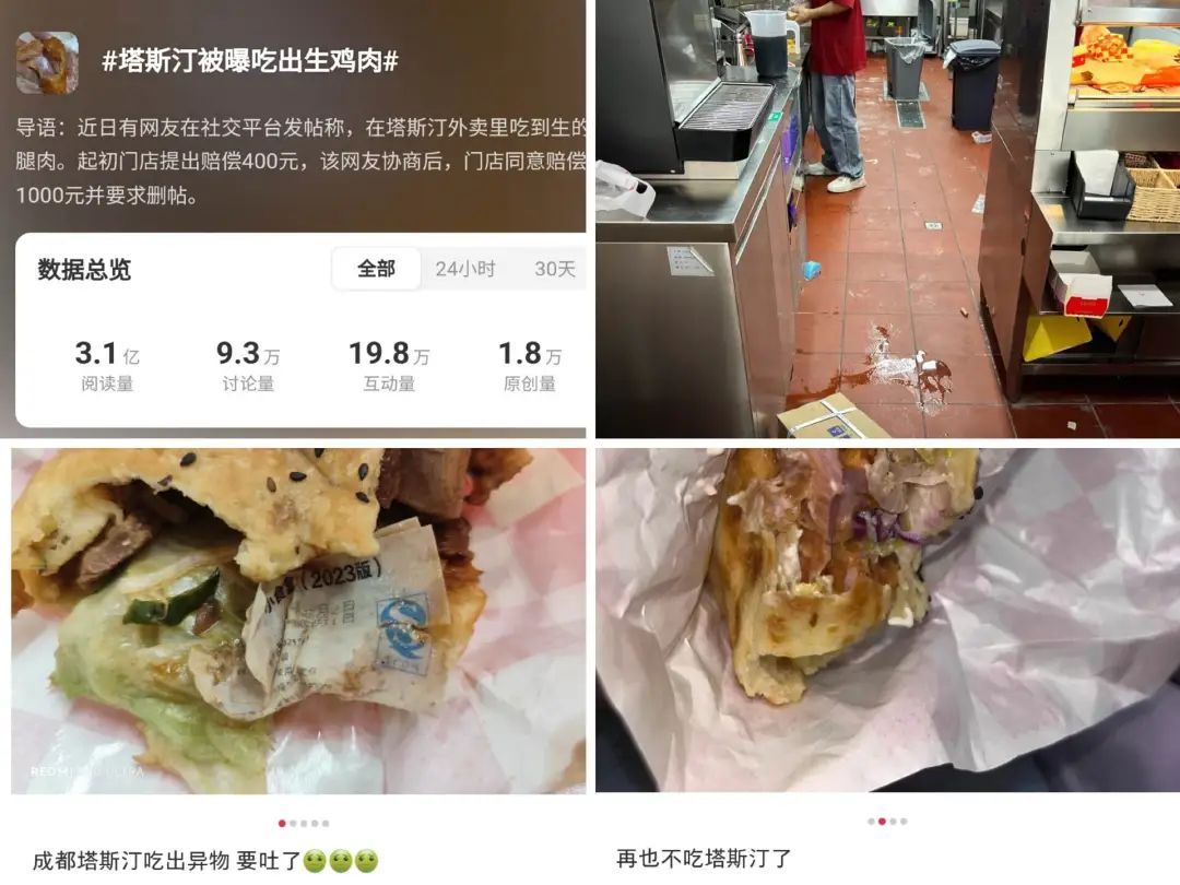 而塔斯汀在急速擴(kuò)張后,最近一年開始頻繁陷入了“食安與服務(wù)爭(zhēng)議”。在社交平臺(tái)上,出現(xiàn)了不少消費(fèi)者的吐槽聲音,涉及品控不穩(wěn)、標(biāo)準(zhǔn)化不足、服務(wù)態(tài)度差等問題,更直接登上熱搜榜,閱讀破3億次。