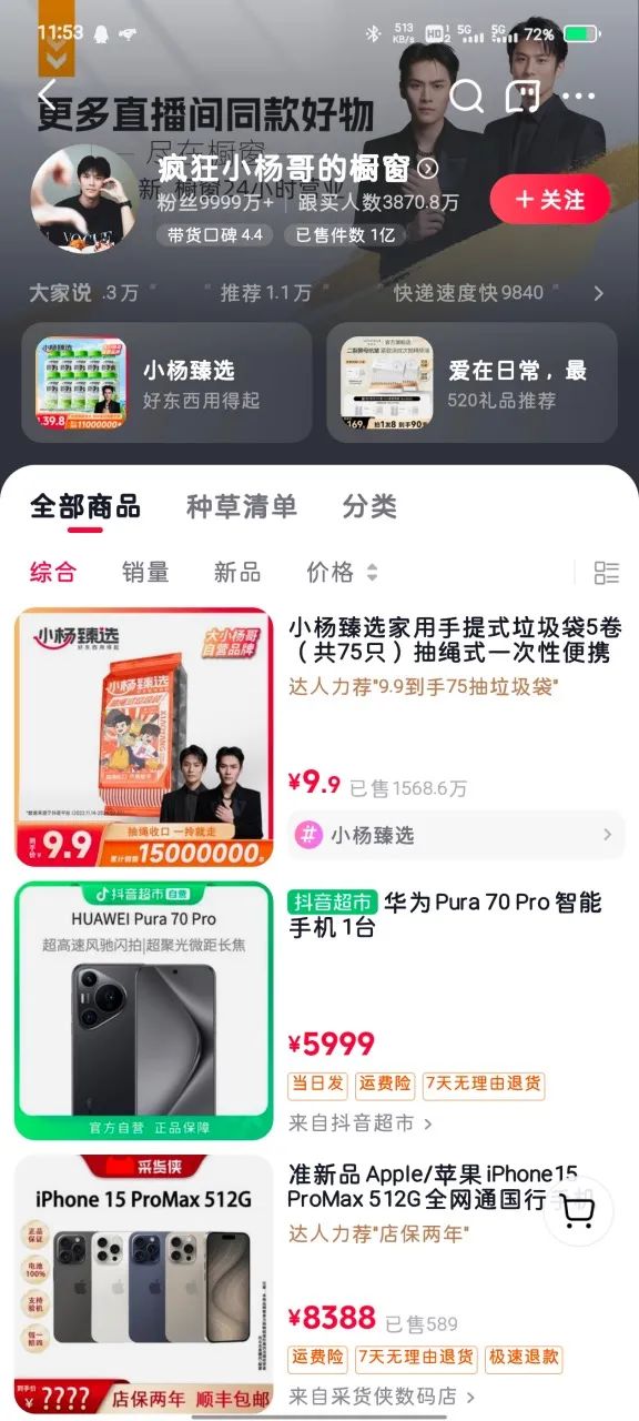 圍觀群眾多,日常使用頻次高、單價低、即買即走的硬需求商品成為帶貨主體,瘋狂小楊哥賬號的抖音櫥窗中一次性垃圾袋的購買量甚至已經(jīng)達(dá)到一千多萬單,相較于傳聞中李佳琦代言花西子的80%傭金,這類白牌和低客單價所帶來的傭金和坑位費(fèi)很難相提并論。