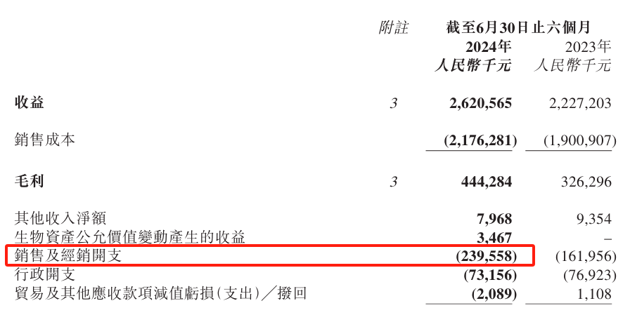 為此,十月稻田的核心應(yīng)對(duì)策略之一就是加碼營(yíng)銷(xiāo)。僅2024年上半年十月稻田的銷(xiāo)售及經(jīng)銷(xiāo)開(kāi)支就達(dá)到了2.39億,比2021全年還要高,上升趨勢(shì)可謂相當(dāng)明顯。