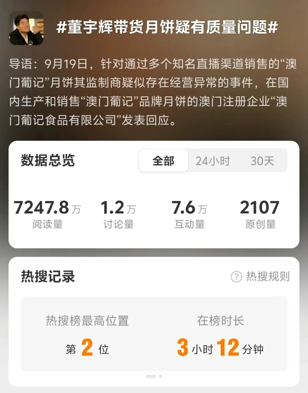 果不其然,很快,#董宇輝帶貨月餅疑有質(zhì)量問題#就沖上熱搜第二,引發(fā)熱議。