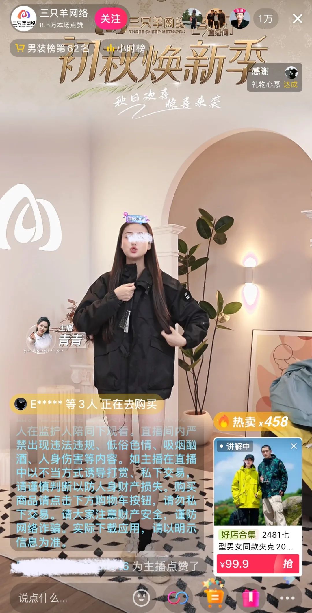 平臺(tái)數(shù)據(jù)顯示,上午9時(shí)50分左右,“三只羊網(wǎng)絡(luò)”直播間有超過(guò)1萬(wàn)名網(wǎng)友在線,但在約30分鐘的直播中,主播未提月餅風(fēng)波事件,只介紹了上播產(chǎn)品。