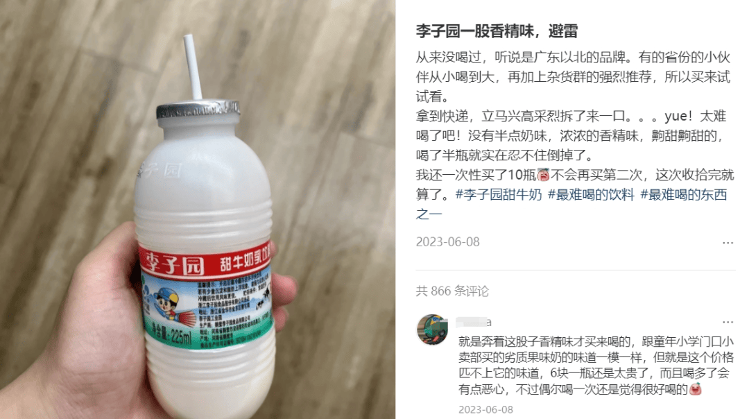 但也有不少消費(fèi)者表示,李子園的業(yè)績(jī)下滑是“意料之中”。社媒上,很多網(wǎng)友都在吐槽李子園的口味和成分,“沒(méi)啥奶味,太甜了”,“喝起來(lái)特別像工業(yè)甜的小甜水”。