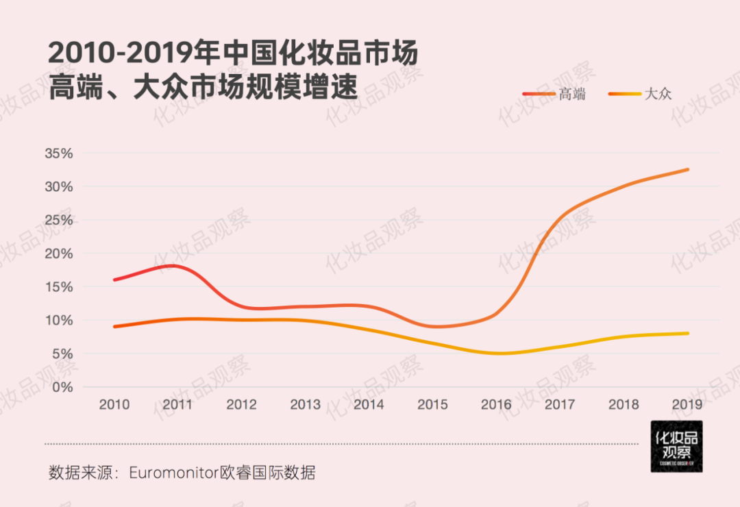 在美妝市場周期波動里顯露的一點(diǎn)是:中國高端美妝的失意,兩年前已埋下伏筆。