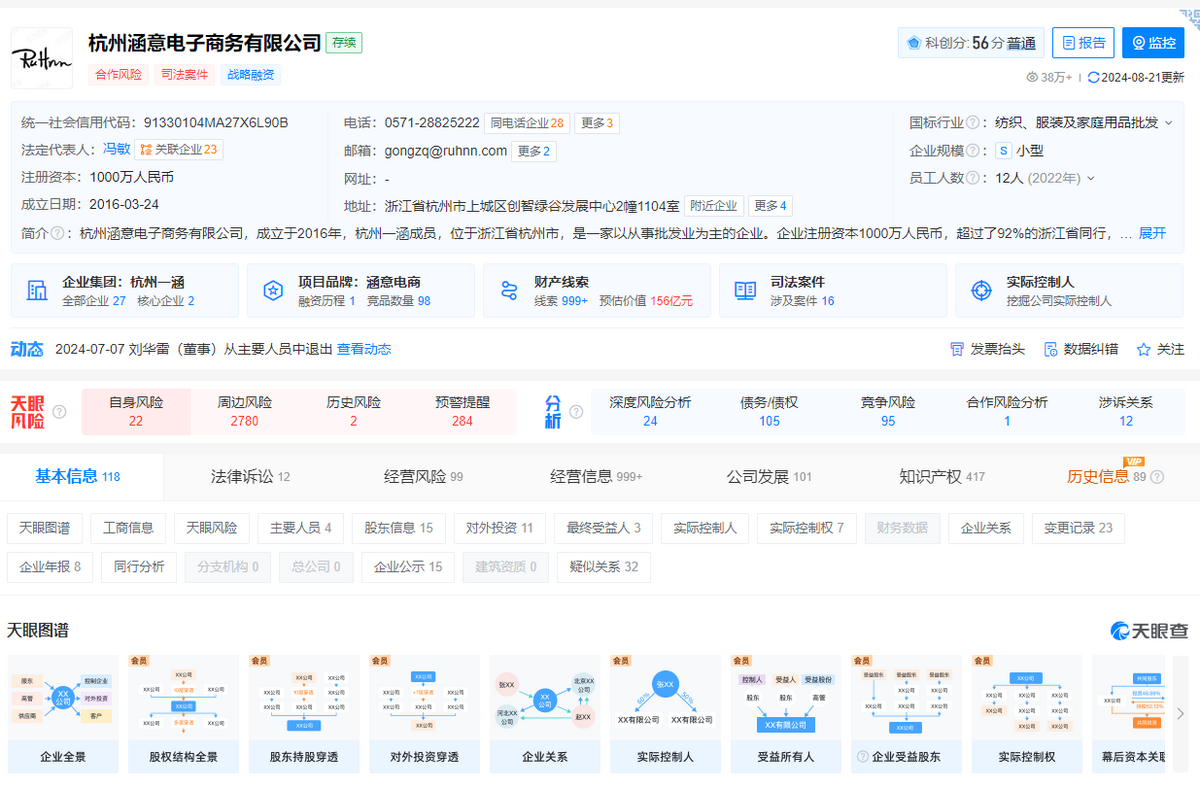 而曾經(jīng)將張大奕送上事業(yè)頂峰的如涵控股,退市后,已于2023年5月8日被注銷。在電商行業(yè),如涵控股也曾備受關(guān)注。2019年,獲得阿里巴巴、君聯(lián)資本等投資的如涵控股在納斯達(dá)克上市,成為“中國網(wǎng)紅電商第一股”。然而,上市后,如涵控股的發(fā)展卻并不順利,開盤破發(fā)、虧損,次年就從納斯達(dá)克退市了,如今更是走到了注銷的一步。對(duì)于為何選擇注銷,如涵控股并未透露原因。有內(nèi)部員工告訴媒體,公司籌劃海外上市時(shí),已無實(shí)際經(jīng)營業(yè)務(wù),所有業(yè)務(wù)均由其他公司運(yùn)營,注銷是公司股東的正常安排。