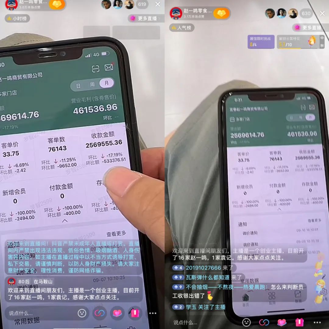 開了16家趙一鳴門店的加盟商羅智,偶爾會在抖音上開直播,在最近的一次直播中他展示門店截至9月14日的營業(yè)數(shù)據(jù):客單價、客單數(shù)、收款額等多項關(guān)鍵數(shù)據(jù)均呈環(huán)比大幅下滑,平均每家店毛利僅2.9萬,這意味著未必能覆蓋房租、水電、人工成本。