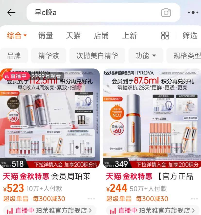 在淘寶搜“早C晚A”,出現(xiàn)的就是珀萊雅的大單品