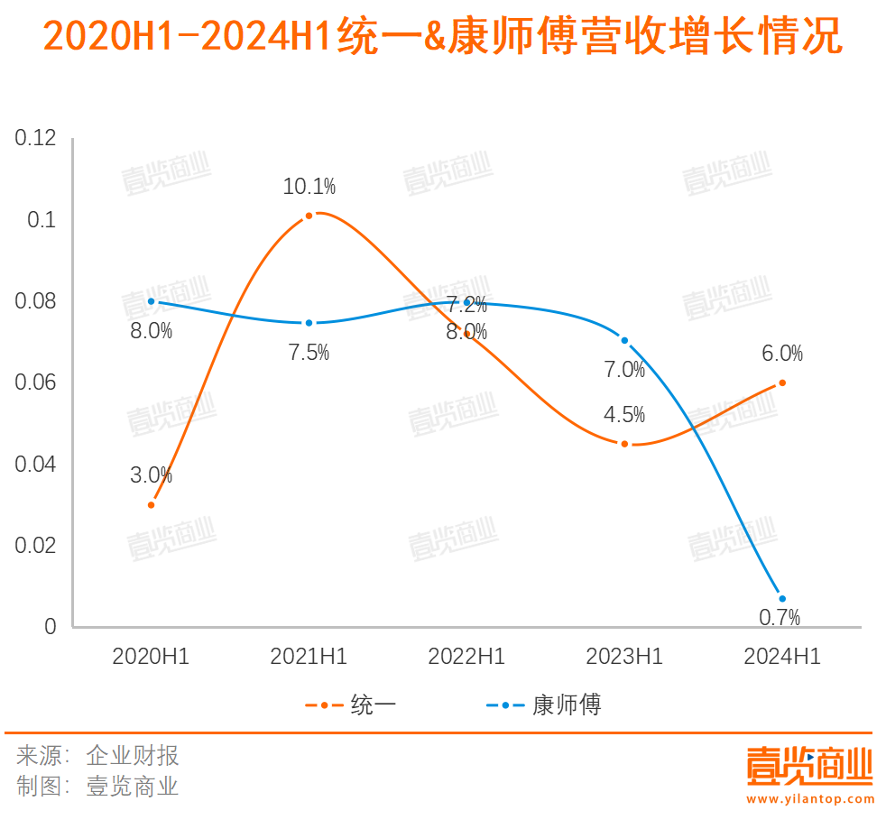 這么看來(lái),康師傅和統(tǒng)一在今年上半年凈利潤(rùn)的增長(zhǎng)還跑贏了整體大盤(pán):2024年H1,統(tǒng)一凈利潤(rùn)增速達(dá)8.3%,康師傅凈利潤(rùn)增速達(dá)1.7%。