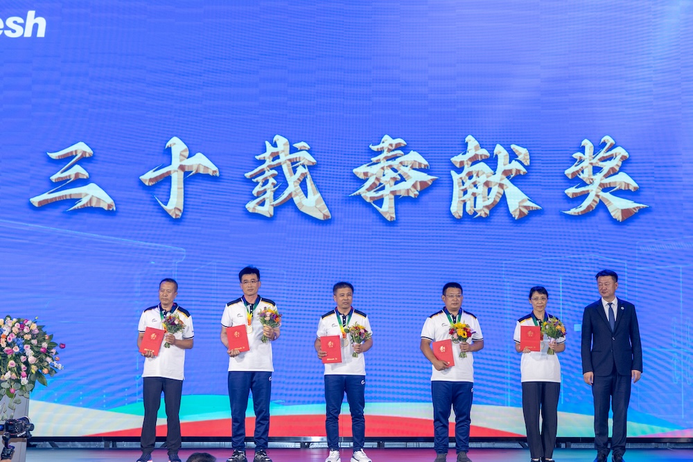 為表彰企業(yè)發(fā)展三十年歷程中的貢獻(xiàn)者,公司表彰了五位自公司創(chuàng)立之初便與企業(yè)同呼吸、共命運(yùn)的老員工,為其頒發(fā)了“三十載奉獻(xiàn)獎(jiǎng)”,感謝他們多年來的忠誠(chéng)與貢獻(xiàn);“感恩同行獎(jiǎng)”授予了三位雖已從公司退休,卻始終心系企業(yè)發(fā)展并給予支持的退休員工;“創(chuàng)新團(tuán)隊(duì)獎(jiǎng)”頒發(fā)給了智能奶茶機(jī)項(xiàng)目組,以肯定他們?cè)趧?chuàng)新領(lǐng)域所取得的杰出成績(jī);“精誠(chéng)合作獎(jiǎng)”頒發(fā)給了20位合作伙伴,這不僅是對(duì)合作伙伴長(zhǎng)期以來攜手并進(jìn)、共同成長(zhǎng)的認(rèn)可,也象征著我們?cè)谧非笞吭降牡缆飞,因團(tuán)結(jié)協(xié)作而迸發(fā)出的強(qiáng)大合力。