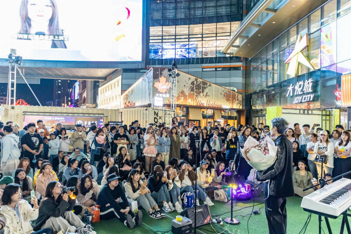 瘋搶節(jié)期間,朝陽大悅城迎來14周年店慶。以“FOURTEEN,F(xiàn)OR TEEN!十四年,致青年”為主題,朝陽大悅城攜手時下熱門青年文化廠牌,推出原創(chuàng)IP“青年路詩歌節(jié)—有詩發(fā)聲”,以詩歌為核心串聯(lián)「有詩發(fā)聲」、「詩歌超市」、「詩間良方」、「氈房計劃」4大主題場景,邀請?zhí)镌瑻不可能三角、很美味、王大衛(wèi)、陳志鵬、貢秋卓瑪?shù)热藲飧枋,帶?5+場重磅戶外音樂Live,連續(xù)30+場戲劇/肢體/療愈/對談互動工坊,在青年文化的匯源地再出發(fā),為青年發(fā)聲,與青年對話。