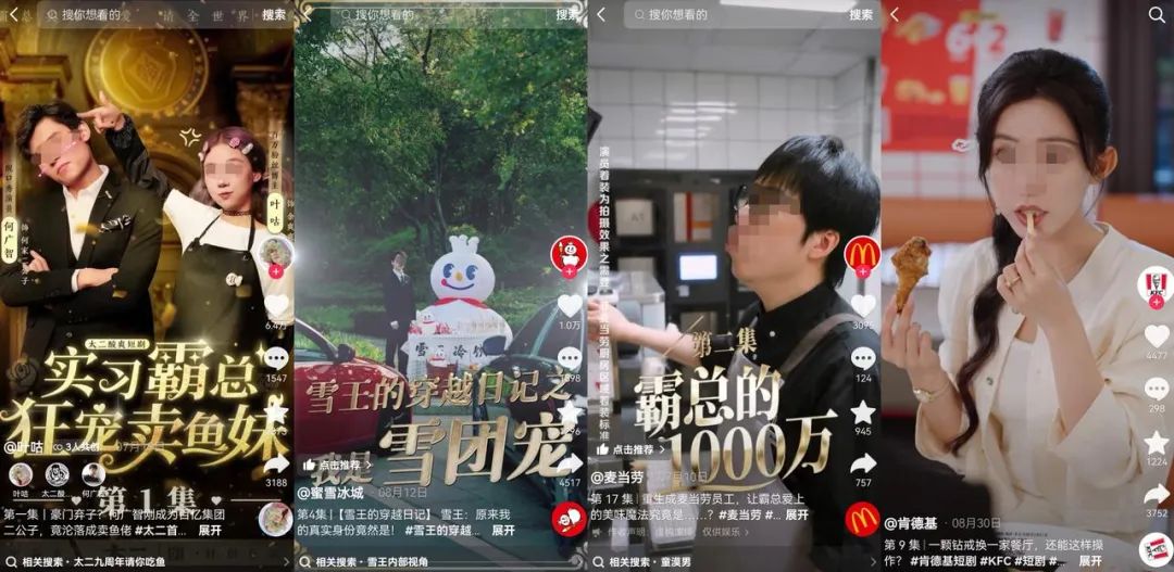 8月29日,肯德基也推出了首部短劇《重生之吃貨皇后惹不起》,集合了霸總、穿越、商戰(zhàn)等多重元素,短劇爆款女主趙佳主演,目前抖音播放量超14億,是所有餐飲品牌中播放量最高。