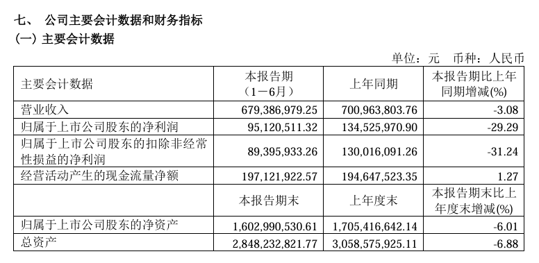 9月10日,李子園發(fā)布了2024年半年度業(yè)績報(bào)告。財(cái)報(bào)顯示,2024年上半年李子園實(shí)現(xiàn)營收6.79億,同比減少3.08%;歸屬上市公司股東凈利潤9512萬,同比減少29.29%。