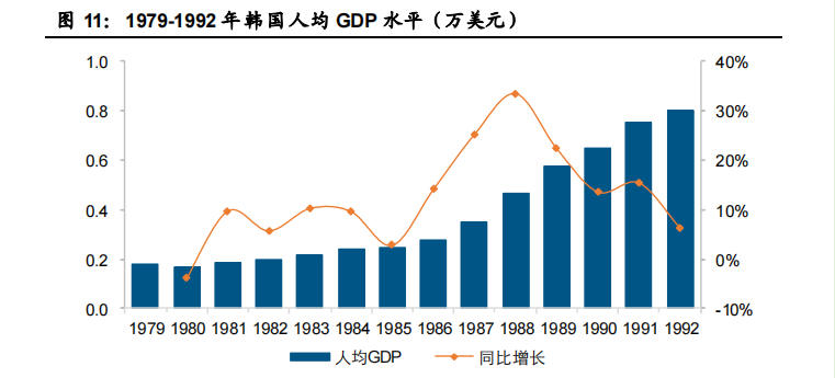 1961年,韓國(guó)總統(tǒng)樸正熙上臺(tái),效仿日本確立出口導(dǎo)向政策,這種通過(guò)采取高關(guān)稅(平均關(guān)稅高達(dá)50%,奢侈品稅達(dá)100%)、高進(jìn)口企業(yè)利率(利率高達(dá)20%)來(lái)抑制國(guó)際企業(yè)沖擊的同時(shí),也保護(hù)了國(guó)內(nèi)產(chǎn)業(yè)的穩(wěn)步發(fā)展。