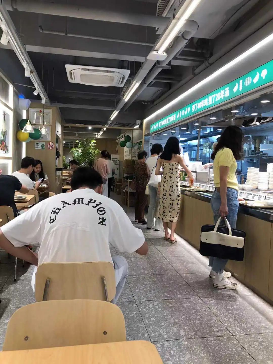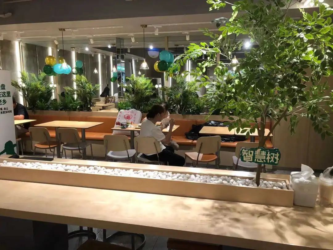 老鄉(xiāng)雞店面的整體色調(diào)為綠色,延續(xù)了老鄉(xiāng)雞一貫的風(fēng)格,還增加了綠植、鏡子等讓空間顯得更大、更清新。一共有72個(gè)座位,據(jù)了解,已試營業(yè)1個(gè)月。