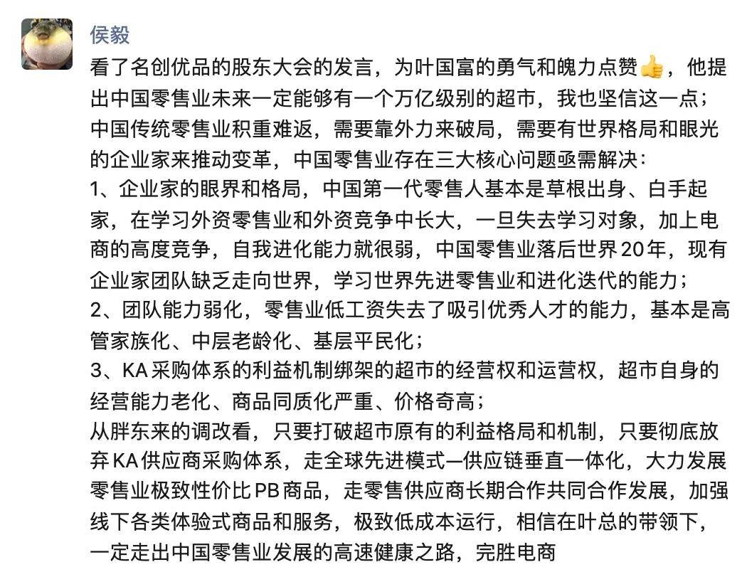 而這次對永輝的投資,似乎是他為自己“立名”的第二場戰(zhàn)役。值得一提的是,關于這一樁交易,據說葉國富在朋友圈回應:“大家都看不懂就對了,如果看得懂我就錯了”(未經本人證實)。