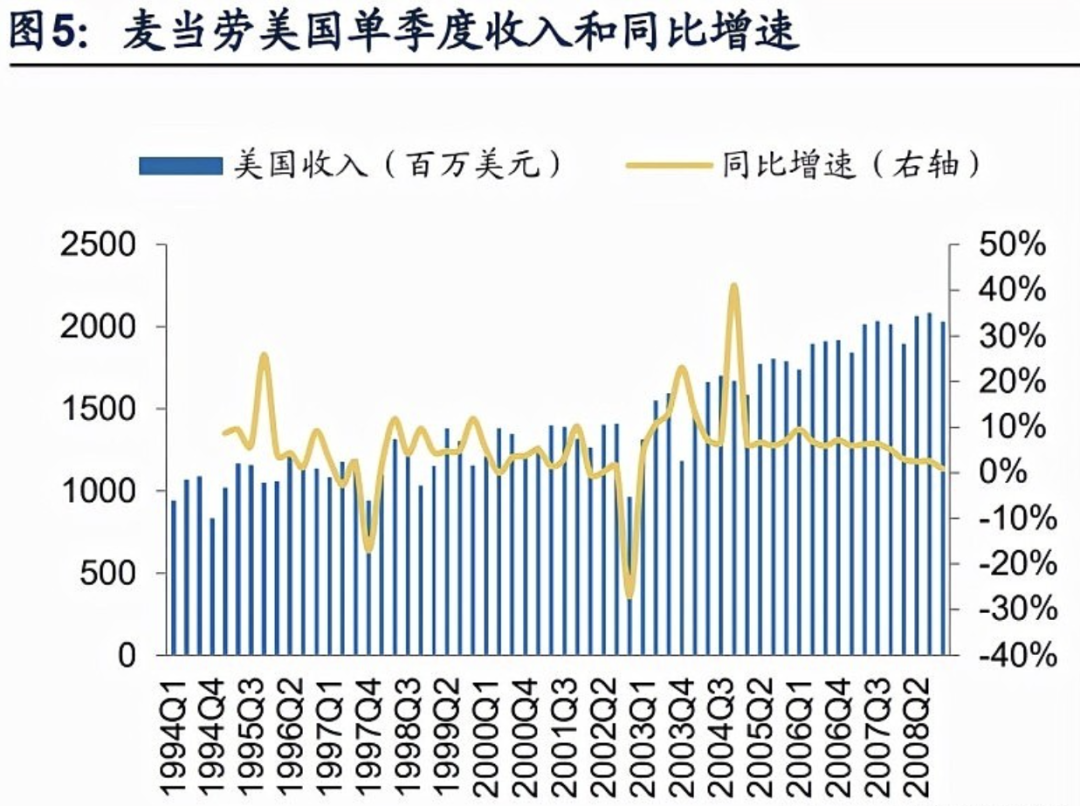 此外,公司還逐步回歸麥當(dāng)勞主品牌經(jīng)營(yíng),出售非核心品牌,此前并購的Aroma Café、Donatos Pizzeria、Chipotle Mexican Grill、Boston Market 等品牌在2002年后的幾年內(nèi)逐步剝離退出。