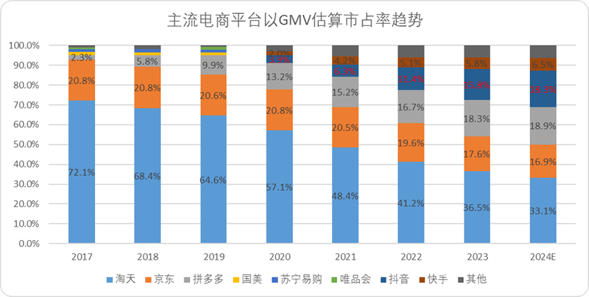 圖:主流電商平臺以GMV估算市占率,來源:中金財富,錦緞研究院