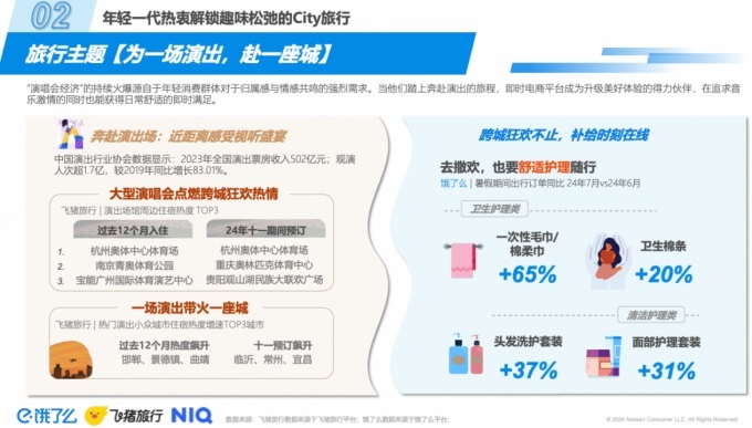 演唱會、取景地、劇情綜藝游等正在成為更多年輕人“說走就走”的旅行目的,今年國慶,山西朔州就因為“黑悟空”取景地而一躍成為預定量漲幅最高城市,臨沂、常州和宜昌等城市也因為演出,住宿預訂熱度增幅位居全國前三。