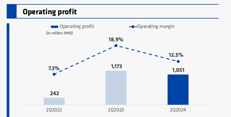不過我們發(fā)現(xiàn),與穩(wěn)定增長的營收相比,瑞幸的營業(yè)利潤卻呈現(xiàn)出較大的波動。最大差值(2024年Q1與2023年Q2)可達(dá)到12.38億,最新兩季度營業(yè)利潤差距也達(dá)到了11億之多。