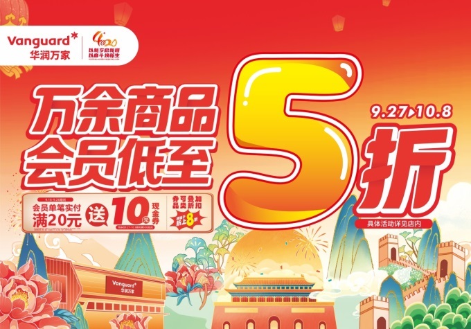 華潤(rùn)萬(wàn)家多重優(yōu)惠迎國(guó)慶,萬(wàn)余商品會(huì)員低至5折