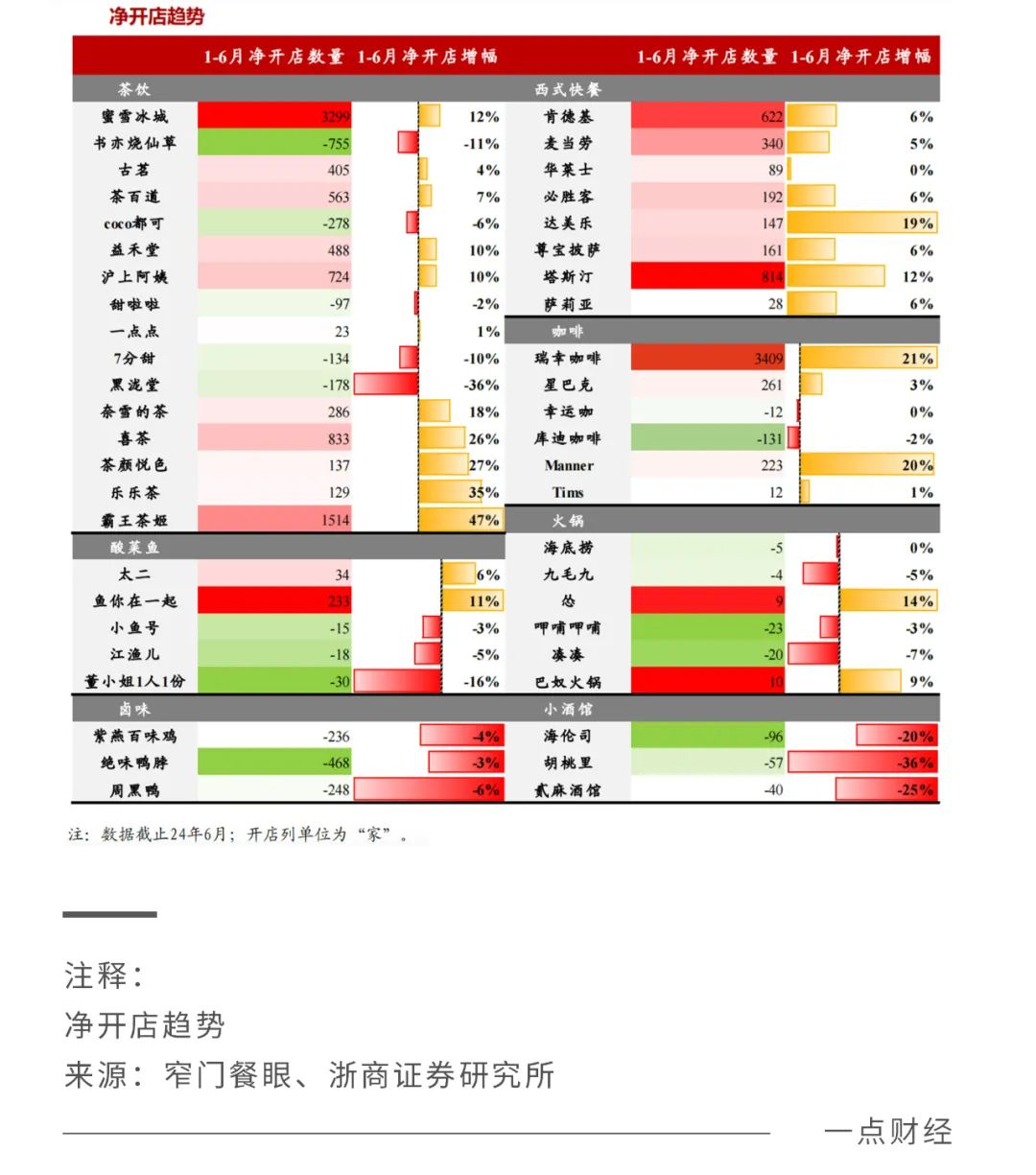 平價(jià)餐飲卻仍在大量開店。浙商證券研究報(bào)告顯示,2024年上半年蜜雪冰城、塔斯汀、薩莉亞等品牌正在快速開店,其中蜜雪冰城凈開店3299家,同比增長12%;塔斯汀凈開店814家,同比增長12%;薩莉亞凈開店28家,同比增長6%。