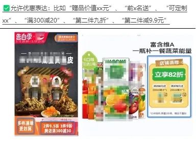 具體來講,商品主圖需避免以下價(jià)格誤導(dǎo)性表達(dá),如“到手價(jià)xxx元”“券后價(jià)xxx元”“活動價(jià)xxx元”“xxx元/3件”“兩件均價(jià)xxx元”等。同時(shí),平臺鼓勵(lì)并允許使用清晰、準(zhǔn)確且不易引起混淆的價(jià)格與促銷說明,如“贈品價(jià)值xx元”“前x名送”“可定制xx”“滿300減20”“第二件九折”“第二件減9.9元”等。