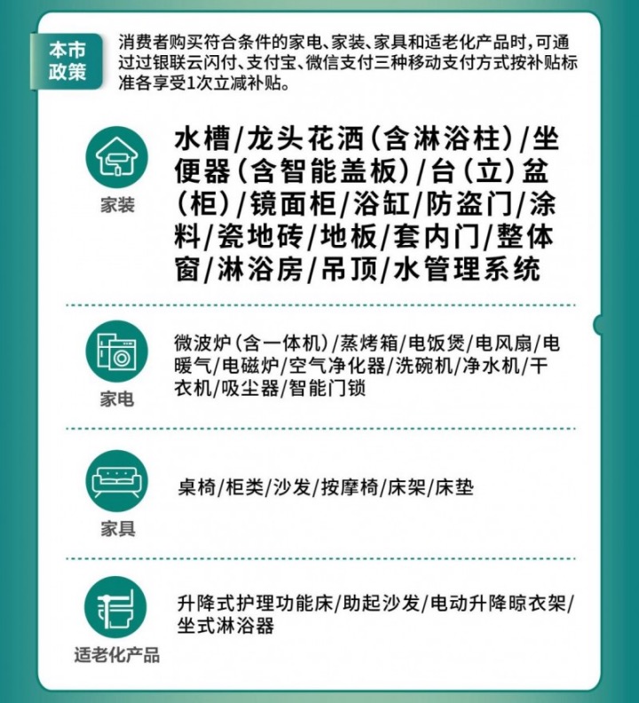上海市商務(wù)委等六部門印發(fā)《上海市加力支持綠色智能家電消費補貼政策實施細則》。根據(jù)《實施細則》,國家家電“以舊換新”8大類補貼政策正式實施。結(jié)合上海市52項家電家居補貼政策,消費者最高可享受60項品類的家電家居補貼優(yōu)惠。且統(tǒng)籌安排資金超過40億元,支持家裝、家電、家具、適老化產(chǎn)品等消費品“以舊換新”。此舉措不僅推動了綠色家電及家居產(chǎn)品的普及,同時還為消費者帶來實實在在的優(yōu)惠,切實提升生活品質(zhì)。