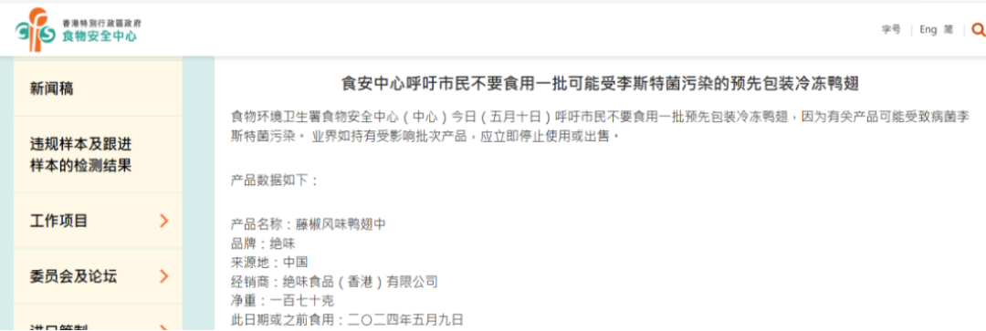 圖源:香港食物環(huán)境衛(wèi)生署食物安全中心