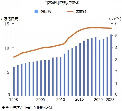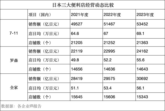 2023財(cái)年,日本三大主要便利店企業(yè)營業(yè)利潤都創(chuàng)下了歷史新高。今年8月份,總銷售額為1.049萬億日元,增長0.6%,連續(xù)33個月保持增長。國內(nèi)全部店鋪數(shù)為55730個,同比減少80個。
