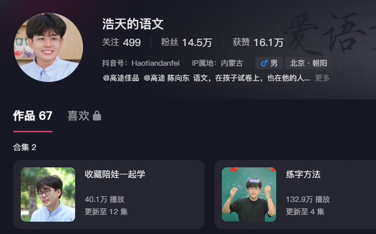 一方面,就連東方甄選都難以再造一個董宇輝,又何況高途佳品。在高途佳品停播之前,浩天推出了一個以教育為主題的直播賬號——“浩天(獨(dú)立自強(qiáng)版)”,現(xiàn)已更名為“浩天的語文”,并在8月25日晚做了一場賣貨單飛秀,從視頻內(nèi)容和直播主題來看,曾是語文老師的浩天回到了語文教育賽道。