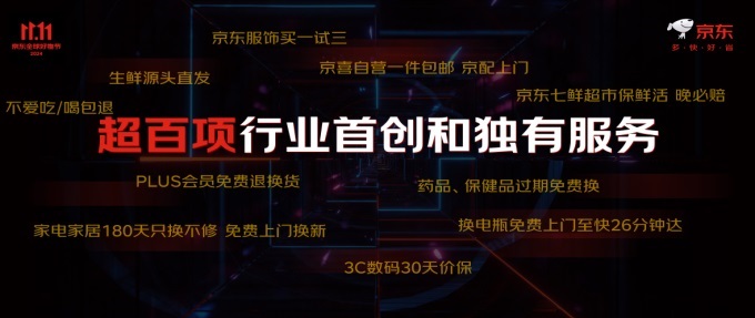 此外,還有3C數(shù)碼的30天價保,家電家居的180天只換不修、免費上門換新服務(wù),京東健康的藥品、保健品過期免費換、健康器械365天只換不修,京東超市不愛吃包退、京東汽車換電瓶免費上門安裝至快26分鐘達(dá)等特色服務(wù)。