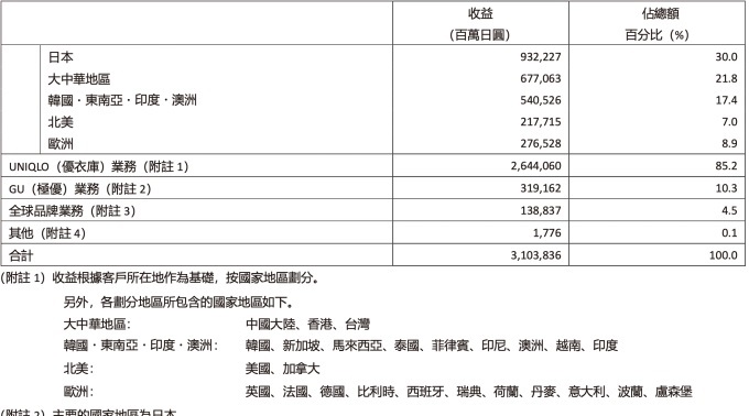 海外UNIQLO(優(yōu)衣庫)事業(yè)分部方面,本財(cái)年收益總額為17118億日元,同比增長19.1%,經(jīng)營溢利總額為2834億日元,同比增長24.9%。其中大中華地區(qū)全年度收益為6770億日元,同比增長9.2%,經(jīng)營溢利為1048億日元,同比增長0.5%。按當(dāng)?shù)刎泿庞?jì)算,中國大陸及香港市場錄得收益增長但經(jīng)營溢利下降。