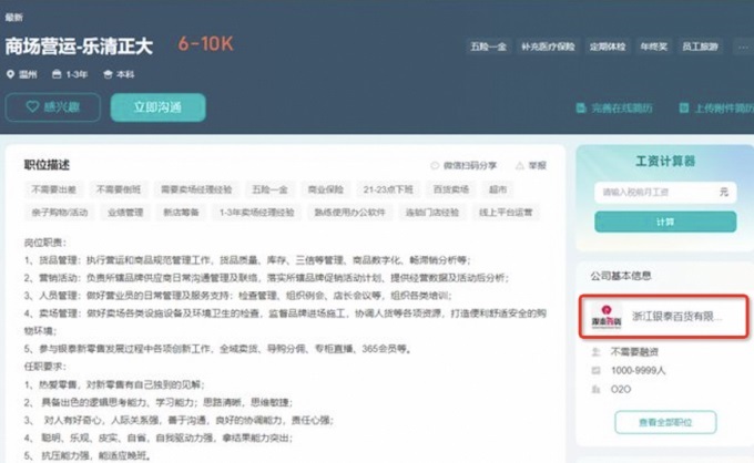 搜索發(fā)現(xiàn),招聘平臺上已經(jīng)掛出崗位招聘信息,信息由銀泰百貨(阿里系銀泰)發(fā)出。如此看來,銀泰百貨運(yùn)營團(tuán)隊(duì)大概率已正式進(jìn)駐。