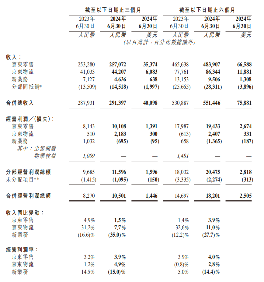 京東2024年第二季度財務(wù)數(shù)據(jù),圖源:京東財報