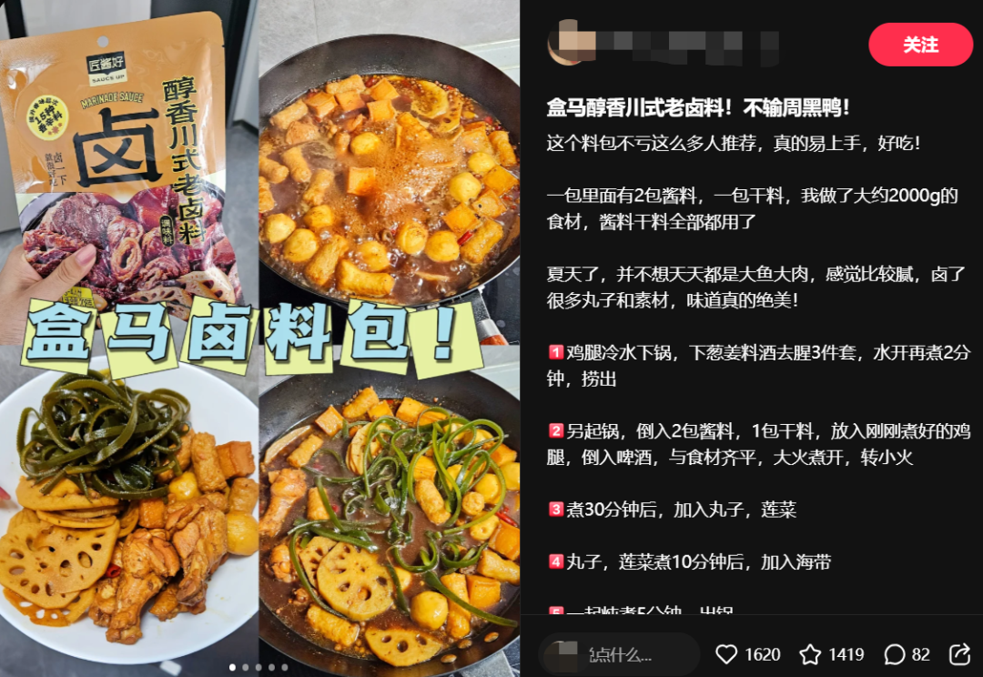 愛吃鹵味的年輕人,也開始尋覓起了絕味鴨脖們的“平替”。在社媒平臺上,有不少網(wǎng)友分享出自己各處購買的、能做出連鎖店口感的鹵料包,以及代工廠直發(fā)的低價鹵貨,一些本地尚未形成規(guī)模的小店也經(jīng)常被同城地區(qū)的網(wǎng)友推薦。